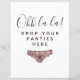 Muestra a tus invitados dónde dejar sus regalos para el juego de la cabaña Bridal Shower con este cartel de "Drop Your Panties Here".