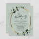 El presupuesto Eucalyptus Gold All in One con detalles sobre el código QR Atrás RSVP Invitación a la boda sabia... Nuestra asequible invitación a bodas botánicas "todo en uno" incluye un falso marco dorado oval adornado con hojas de eucalipto de color esmeralda sobre un fondo de sabio ligero. La caligrafía moderna de moda muestra el texto para "el Boda de", "y" así como la "recepción a seguir" acompañada de una elegante tipografía serif para el texto que puedes personalizar. El sabio de la invitación contiene todos los detalles que normalmente se verán en las tarjetas separadas del paquete boda. Esta moderna invitación a la boda fue diseñada para ser a la vez elegante y de bajo costo... sin mencionar el ahorro de tiempo para futuras novias. En la parte posterior también hay una plantilla de código QR que puede reemplazar con su propio código sólo escribiendo la URL de su sitio web boda. Todo el texto de ejemplo (aparte de los gráficos de caligrafía) se puede revisar fácilmente con su propia información sobre la plantilla de personalización.