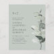 Presupuesto todo en una invitación a la boda de eucalipto botánico... Nuestra asequible invitación a bodas botánicas "All in One" cuenta con una elegante rama de acuarela de eucalipto en tonos de salvia y verde polvoriento que le da el texto de la invitación a su lado. El sabio ligero de la invitación contiene todos los detalles que normalmente se verán en tarjetas separadas dentro del paquete boda. Esta moderna invitación a la boda, tanto en el frente como en la espalda, ha sido diseñada para ser elegante y para tener en cuenta el presupuesto... sin hablar de ahorrar tiempo. En la parte posterior también hay una plantilla de gráfico de código QR que puede reemplazar con su propio código (o eliminar si no tiene previsto usar uno). Todo el texto de ejemplo se puede revisar fácilmente con su propia información sobre la plantilla de personalización. Todo esto en un solo diseño de presupuesto también está disponible en una tradicional tarjeta de invitación a bodas 5x7.