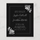 Presupuesto todo en una silenciosa y gris Eucalipto Elegante invitación a la boda negra... Nuestra asequible invitación a bodas botánicas "All in One" incluye un marco de texto gris y plateado con ramas falsas de eucalipto plateado que bordean el texto de tu invitación con un elegante fondo negro. La parte posterior de la invitación contiene todos los detalles que normalmente se verán en las tarjetas separadas del paquete boda. Esta moderna invitación a la boda fue diseñada para ser a la vez elegante y de bajo costo... por no hablar de ahorrar tiempo. Todo el texto de ejemplo se puede revisar fácilmente con su propia información sobre la plantilla de personalización.