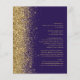 Presupuesto todo en una invitación a la boda púrpura de un Purpurina de oro con detalles en la espalda... Nuestro asequible purpurina de oro "All in One" en invitación a bodas moradas cuenta con un borde de purpurina de oro junto a su texto de invitación y las iniciales de monograma de novias y novios. El BACK de la invitación contiene todos los DETALLES que normalmente se verán en tarjetas separadas en el paquete del boda, incluyendo la hora y el lugar de recepción, opciones de alojamiento, sitio web del boda, RSVP e información del registro de regalos. Esta moderna invitación a la boda fue diseñada para ser a la vez elegante y de bajo costo... por no hablar de ahorrar tiempo. Todo el texto de ejemplo se puede revisar fácilmente con su propia información sobre la plantilla de personalización.