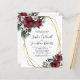 Presupuesto todo en un marco geométrico borgoño Amaryllis Bouquet Invitación a la boda floral... Nuestra exclusiva y asequible invitación a bodas de invierno floridas, "front and back", cuenta con un marco geométrico dorado adornado con ramos de amaryllis burdeos, anémonas blancas, ramas de pino espumoso y follaje de vacaciones verdes que bordean el texto personalizado de la invitación a la boda. La parte posterior de la invitación contiene todos los detalles que normalmente se verán en las tarjetas separadas del paquete boda. Esta moderna invitación a la boda fue diseñada para ser a la vez elegante y de bajo costo... por no hablar de ahorrar tiempo. En la parte posterior también hay una plantilla de gráfico de código QR que puede reemplazar con su propio código (o borrar si no planea usar uno... TAMBIÉN - no olvide borrar el texto que hace referencia a la información del código QR). Todo el texto de ejemplo se puede revisar fácilmente con su propia información sobre la plantilla de personalización.