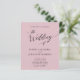 Presupuesto todo en una elegante Moda caligráfica Rosa atractiva invitación a la boda con detalles en la espalda... Nuestra exclusiva y asequible "All in One", polvorienta invitación a una boda rosa, cuenta con un elegante guión de caligrafía negra combinado con tipografía serif para una simple invitación a una boda clásica y de moda con un moderno y polvoriento fondo de rosa. El BACK de la invitación contiene todos los DETALLES que normalmente se verán en tarjetas separadas en el paquete del boda, incluyendo la hora y el lugar de recepción, opciones de alojamiento, sitio web del boda, RSVP e información del registro de regalos. Esta moderna invitación a la boda fue diseñada para ser a la vez elegante y de bajo costo... por no hablar de ahorrar tiempo. En la parte posterior también hay una plantilla de gráfico de código QR que puede reemplazar con su propio código (o eliminar si no tiene previsto usar uno). Todo el texto de ejemplo (aparte de los elementos caligráficos gráficos) se puede revisar fácilmente con su propia información sobre la plantilla de personalización.