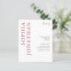 Presupuesto todo en uno con detalles de la moderna tipografía audaz Rosa de moda invitación a la boda monograma... Nuestra asequible "All in One" polvorienta invitación a la boda rosa incluye una audaz tipografía serif combinada con un texto sans serif para una simple y moderna invitación a la boda monogramada. La parte posterior de la invitación contiene todos los detalles que normalmente se verán en las tarjetas separadas del paquete del boda, incluyendo la hora y el lugar de recepción, las opciones de alojamiento, el sitio web del boda, RSVP e información del registro. Esta invitación a la boda de estilo moderno ha sido diseñada para ser a la vez moderna y de bajo coste. Todo el texto de ejemplo se puede revisar fácilmente con su propia información sobre la plantilla de personalización. Tenga en cuenta que tiene la opción de comprar sobres con sus invitaciones o de comprar los suyos propios, si tiene un proveedor de productos de papel preferido.