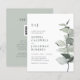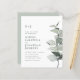Invitación de boda con código QR de eucalipto Todo en Uno Presupuesto.. Nuestra asequible y sencilla invitación de boda botánica presenta una elegante rama de eucalipto en acuarela en tonos de salvia y verde polvoriento que destaca el texto de la invitación junto a ella. La parte posterior de la invitación de color salvia claro también muestra el código QR de su sitio web de boda, así como la URL del sitio web, lo que permite a sus invitados responder en línea fácilmente y ver todos los detalles que normalmente se envían en un paquete de boda. Esta invitación de boda de estilo moderno fue diseñada para ser elegante y consciente del presupuesto... sin mencionar que ahorra tiempo. Todo el texto de ejemplo se puede revisar fácilmente con su propia información en la plantilla de personalización. Este diseño de código QR de respuesta RSVP todo en uno también está disponible en una tarjeta de invitación de boda tradicional de