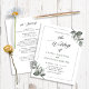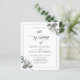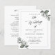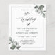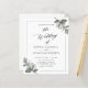 Invitación de boda con caligrafía de eucalipto verde polvoriento todo en uno presupuesto... Nuestra asequible invitación de boda botánica "todo en uno" presenta un marco de texto verde con ramas de eucalipto verde polvoriento que bordean el texto de la invitación. También llama la atención la dramática escritura de caligrafía para las palabras importantes: "la boda de". La parte trasera de la invitación contiene todos los detalles que normalmente se ven en tarjetas separadas en el paquete de boda. Esta invitación de boda de estilo moderno fue diseñada para ser elegante y consciente del presupuesto... sin mencionar que ahorra tiempo. En la parte posterior también hay una plantilla gráfica de código QR que puede reemplazar con su propio código (o eliminar si no planea usar uno). Todo el texto de ejemplo (excepto los elementos gráficos "la boda de", "y" y "recepción a continuación") se puede revisar fácilmente con su propia información en la