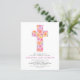 Pastel Presupuestario Rosa Rosa, Naranja y Morado Floral Flores Cruzan la Acuarela Botánica Religiosa Primero (1ª) Invitaciones Sagradas A La Comunión.