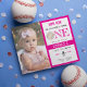 La invitación al primer cumpleaños del Chica de fotografía de beisbol Budget Cute es una encantadora y adorable invitación diseñada con una estética de acuarela. Con un esquema de color rosa y el ilustracion de un pequeño jugador de béisbol novato, captura la emoción de una celebración con temas de béisbol. La tipografía es lúdica pero elegante, y la invitación incorpora varios elementos temáticos relacionados con el béisbol. Perfecto para los padres que aprecian detalles artísticos, esta invitación enfatiza el amor de los padres por los deportes y marca el hito de su hijo en el primer cumpleaños. Logra un equilibrio entre la amabilidad y la deportividad. Un espacio para la foto de tu pequeño, añadiendo un toque personal y elegante, así como creando una invitación visualmente atractiva y atractiva para una celebración memorable. No te pierdas este diseño temático de béisbol para comenzar los planes de fiesta de primer cumpleaños de tu pequeña novata sin tener que meterte en el bolsillo.