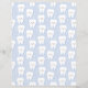 Cute First Tooth doble cara de papel de reserva de rayas para niño. Dientes kawaii sonrientes sobre fondo azul bebé.