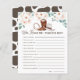 Esta moda "¿quién conoce mejor a la niña de 1 año?" la invitación a jugar con el tema de la carta de primer/primer cumpleaños de una vaquera presenta un fondo blanco con rosas, un gorra de vaquero, botas de vaquero y un plomo. El reverso presenta un fondo blanco con patrones de vaca. Personalice sus necesidades. Puedes encontrar productos coincidentes en mi tienda.