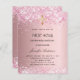 Fondo de degradado rosa de color rosa. Decorado con purpurina falso rosa, confetti y cruz. Personalice y agregue un nombre y detalles. El nombre se escribe con un guión de estilo con letras a mano