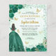Floral Emerald Green Princess Purpurina de vestido con traje de traje de traje de té Sparkle Tiara Crown Butterfly Invitación Quinceanera