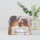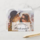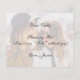 El fondo en ambos lados es una foto de marcador de posición de dos mujeres con gafas de sol hablando y riendo, de StockSnap de Pixabay, libre para uso comercial. En la parte delantera, hay un rectángulo blanco transparente más pequeño con el texto "[Nombre] ¿serás mi dama de honor?" en él. En la parte posterior, toda la foto está cubierta con blanco transparente, encima hay un mensaje caligráfico.