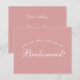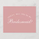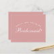 Es solo texto blanco sobre fondo rosa polvoriento (rosa), un color moderno y popular para los vestidos de dama de honor. La palabra Dama de honor en la parte delantera y el mensaje en la parte posterior están escritos en una elegante letra caligráfica, el texto arqueado "[Nombre] ¿serás mi" encima de la palabra Dama de honor en mayúsculas pequeñas.