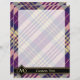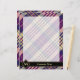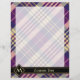 Diseño morado, amarillo dorado y azul tartán. Patrón sin foco. texto personalizado y monograma.