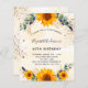 Para una fiesta de cumpleaños número 40 (o cualquier edad). Un fondo de color dorado y acuático decorado con girasoles acuáticos, eucalipto y hojas doradas. Polvo purpurina de oro falso. Personalice y agregue su nombre y detalles del fiesta.