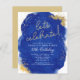 Elegante y moderno Glam Royal Blue Navy Purpurina de oro azul esparkle Confetti color de agua de tinta de alcohol Splash Smudge Celebremos la invitación de cumpleaños Fiesta