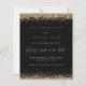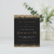 Purpurina Dorado Bordes Script Boda Negro Guardar La Fecha. Un precio económico menor 4,5" x 5,6" alternativa. Disponible en un ALMACENAMIENTO DE TARJETAS SEMI GLOSS 110 lb que es la opción predeterminada (recomendado para invitaciones), O UN ACCESO DE PAPEL DE LADRILLO DE 80 lb SATIN (ideal para los gabinetes). Los sobres son un extra opcional y son algo más grandes que el tamaño de la tarjeta. El purpurina falso de oro bordea los bordes superior e inferior y un guión elegante para guardar nuestra fecha. Personaliza fácilmente el resto del texto a tus detalles.