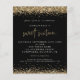 Purpurina Dorado Dulce Dieciséis Invitaciones De La Fiesta Negra. Una alternativa económica para SMALLER de 4,5" x 5,6". Disponible en un ALMACENAMIENTO DE TARJETAS SEMI GLOSS 110 lb o en un SATIN FINISH DE PAPEL DELGADO DE 80 lb. Los sobres son un extra opcional. Los elegantes bordes de confeti purpurina dorado se encuentran en la parte superior e inferior, y también en la parte posterior, sobre un fondo negro clásico. El Sweet Sixteen presenta un estilo moderno de escritura a mano. Personaliza fácilmente el resto del texto a tu propia persona.