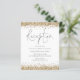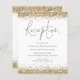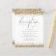 Una alternativa de valor por dinero BUDGET en un tamaño menor de 4,5 x 5,6" de peso semibrillante de 110 libras, que es de espesor similar al de una postal (sin embargo, no es adecuado para usar como postal). POR FAVOR, TENGA EN CUENTA QUE HAY UNA por hoja. Alojamiento de recepción de Bodas Purpurinas de Oro. Un guión moderno para el encabezado y el resto del texto que puede personalizar fácilmente, con bordes purpurinas falsos en los bordes superior e inferior de ambos lados en oro.