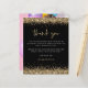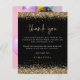 Purpurina de Oro Presupuestario Foto 21st Black Gracias. Un precio económico menor 4,5" x 5,6" alternativa. Disponible en un ALMACENAMIENTO DE TARJETAS SEMI-GLOSS de 110 lb que es la opción predeterminada (más grueso para las invitaciones), O UN ALMACENAMIENTO DE PAPELES DELGADOS SATIN FINISH DE 80 lb (ideal para los gabinetes). Las fronteras de un falso purpurina de oro están en la parte superior e inferior del frente y reemplazan la foto de la parte de atrás con una favorita de su fiesta. Gracias está en un guión de estilo de escritura a mano para coordinar el oro. Personaliza fácilmente el resto del texto. También puede cambiar el texto y el color de fondo a través de la opción personalizar adicional si lo desea.