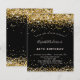 Una invitación moderna, elegante y glamurosa para una fiesta de cumpleaños número 40 (o cualquier edad). Un fondo negro decorado con un polvo falso purpurina dorado. El nombre está escrito con una escritura de estilo con letras a mano moderna. Personalice y agregue los detalles de su fiesta.