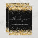 Una tarjeta de agradecimiento por un cumpleaños número 50 (o cualquier edad). Color de fondo negro, decorado con un falso purpurina dorado. En la parte frontal del guión con letras a mano y el texto: Gracias, tu texto. Atrás: Personaliza y agrega tu nota de agradecimiento y nombre.