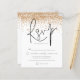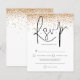 Purpurina de oro Confetti Wedding RSVP. Un precio económico menor 4,5" x 5,6" alternativa. Disponible en un ALMACENAMIENTO DE TARJETAS SEMI GLOSS 110 lb que es la opción predeterminada (recomendado para invitaciones), O UN ACCESO DE PAPEL DE LADRILLO DE 80 lb SATIN (ideal para los gabinetes). Los sobres son un extra opcional y son algo más grandes que el tamaño de la tarjeta. Purpurina de oro Confetti Wedding RSVP. Una tipografía elegante en negro para el título principal RSVP complementando el resto del texto que se puede personalizar fácilmente con un borde purpurina falso de oro en la parte superior de cada lado.