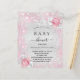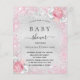Una moderna y elegante ducha de bebé, celebrando a una niña. Fondo de aspecto metálico de color plateado falso decorado con purpurina falso rosa, chispas y flores. Personalice y agregue un nombre y detalles del fiesta. Letras de color negro.