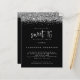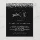 Purpurina de plata de presupuesto Dulce 16 Invitación negra. Un precio económico menor 4,5" x 5,6" alternativa. Disponible en un ALMACENAMIENTO DE TARJETAS SEMI GLOSS 110 lb que es la opción predeterminada (recomendado para invitaciones), O UN ACCESO DE PAPEL DE LADRILLO DE 80 lb SATIN (ideal para los gabinetes). El purpurina falso plateado bordea la parte superior de cada lado, y el dulce 16 está en un guión de estilo de escritura a mano establecido en negro clásico. Personaliza fácilmente el resto del texto a tus propios detalles. También puede cambiar el texto y los colores de fondo a través de la opción personalizar adicional si lo desea.