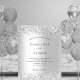 Un falso fondo metálico plateado. Decorado con un falso purpurina. Personalice y agregue sus nombres y detalles del fiesta.