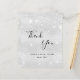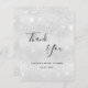 Una tarjeta de agradecimiento a una ducha de novia. Un falso color de fondo metálico plateado. Con polvo falso purpurina. Al frente, un gran guión escrito a mano y el texto: Gracias, tu texto, título y una fecha. Atrás: personalizar y agregar Su nota de agradecimiento y nombre.