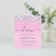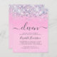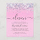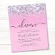 Bonito amigable con el presupuesto, glamorosa y jovencita invitación a fiesta de cumpleaños número 11 con confeti purpurina chispeante y holográfico color púrpura, rosa y plateado sobre fondo rosa y "once" en un suave guión de moda gris con toques.