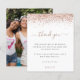 Una alternativa de valor por dinero BUDGET en un tamaño menor de 4,5 x 5,6" de peso semibrillante de 110 libras, que es de espesor similar al de una postal (sin embargo, no es adecuado para usar como postal). POR FAVOR, NOTE QUE HAY UNA invitación por hoja Rosa de presupuesto Purpurina de oro Foto ducha de novia Gracias. Un borde de rosa purpurina de oro está en la parte superior, y Gracias está en un guión estilo escritura a mano en un polvoriento rosa. Personaliza fácilmente el texto a tus propios detalles. En la parte posterior, cambie su foto favorita de la ducha de orientación vertical.