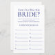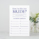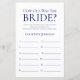Esta sencilla, minimalista y moderna hoja de juego de "¿Qué edad tenía la novia?" en azul marino es perfecta para cualquier celebración. Este juego divertido y fácil seguramente traerá muchas risas a cualquier celebración. Pida a familiares y amigos que le envíen fotos de la novia a diferentes edades y háguelas imprimir. Numérelas y colóquelas cerca de estas hojas de juego. Simplemente dé una hoja a cada invitado (no olvide los bolígrafos) y deje que comience la competencia. Le sorprenderá cuánta gente realmente conoce las edades de la novia. En segundos podrá ver cómo se verá su hoja de juego. Simplemente seleccione "Personalizar esta plantilla" y escriba el nombre de la novia.