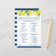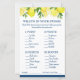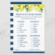 Haz que los invitados se rian y caven a través de sus bolsas con este divertido juego de ducha de novia "¿Qué hay en tu bolso?", perfecto para tu celebración de "Main Squeeze", con el tema del limón. Los clientes revisan los objetos cotidianos (¡e inesperados!) que encuentran en sus bolsos y calculan sus puntos. ¡La persona con mayor puntuación gana! Este juego, con detalles de limón recién hechos y un diseño moderno y fresco, añade un toque divertido a cualquier ducha de novia, brunch o bash en el patio trasero. ¡Un alegre público garantizado que funciona para todas las edades!