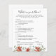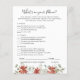 Esta tarjeta de juegos para bebés cuenta con bonitas flores de invierno de color agua suave en tonos rojos y blancos, equilibradas con una vegetación exuberante, lo que la convierte en una paleta cálida y ventilada. Cambia el color de fondo o agrega gráficos para que coincidan con el tema de la ducha. Necesita gráficos coordinados, por favor contáctame para un pedido de personalizado. Por supuesto, no es necesario que juegues en la ducha para bebés, pero ten en cuenta que vas a tener un grupo de todas las edades, y la mayoría de los clientes probablemente nunca se han encontrado antes que el fiesta. Mezclar algunos de estos clásicos juegos de ducha para bebés es la manera perfecta de romper el hielo. Estas tarjetas diseñadas profesionalmente son rápidamente personalizable. Agregue la redacción de su personalizado a este diseño utilizando los cuadros "Editar esta plantilla de diseño" en el lado derecho del elemento, o haga clic en el botón azul "Personalizar" para organizar el texto, cambiar los tipos de letra y los colores y también agregar información o imágenes adicionales a este diseño. Haga clic en "Personalizar adicional" para abrir opciones completas de edición. Si necesita algún elemento de coordinación, (gracias a las tarjetas, etc.) por favor contáctame para un pedido de personalizado. **** Para las solicitudes de personalizado con las que necesita mi ayuda, no coloque esta mercancía en su carrito. En su lugar, envíeme su solicitud por correo electrónico a lauralise@iyhtvdesigns.com Una vez que el artículo esté disponible, se le enviará por correo electrónico un enlace a su mercancía. Puede usar ese enlace para realizar su pedido. Por favor, espere hasta 48 horas.