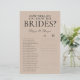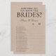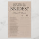 ¿Qué Tan Bien Conoce A Las Novias? La hoja de juego LGBTQ Bridal Shower (ducha de novia LGBTQ) te traerá mucha diversión y risas a tu ducha de bodas. La página es a la vez elegante y moderna. Su diseño sencillo con fuentes negras sobre papel artesanal es perfecto para cualquier boda. Para hacer de este juego su propio juego, simplemente seleccione Personalizar esta plantilla y escriba los nombres e iniciales de las novias.