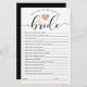 Divertido y elegante lo bien que conoce el juego de la ducha de novia. Juego divertido para jugar en tu fiesta de ducha de novia. El diseño presenta "Bride" en un elegante tipo de letra en negro. Se puede cambiar la lista de preguntas.