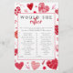 Haz que la ducha de "mamá para ser" se acuerde con este querido, divertido juego de ducha de bebé "le gustaría"! Características de diseño, ilustraciones acuarelas de corazones rojos con diferentes patrones.