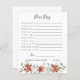 Esta tarjeta de juegos para bebés cuenta con bonitas flores de invierno de color agua suave en tonos rojos y blancos, equilibradas con una vegetación exuberante, lo que la convierte en una paleta cálida y ventilada. Cambia el color de fondo o agrega gráficos para que coincidan con el tema de la ducha. Necesita gráficos coordinados, por favor contáctame para un pedido de personalizado. Por supuesto, no es necesario que juegues en la ducha para bebés, pero ten en cuenta que vas a tener un grupo de todas las edades, y la mayoría de los clientes probablemente nunca se han encontrado antes que el fiesta. Mezclar algunos de estos clásicos juegos de ducha para bebés es la manera perfecta de romper el hielo. Estas tarjetas diseñadas profesionalmente son rápidamente personalizable. Agregue la redacción de su personalizado a este diseño utilizando los cuadros "Editar esta plantilla de diseño" en el lado derecho del elemento, o haga clic en el botón azul "Personalizar" para organizar el texto, cambiar los tipos de letra y los colores y también agregar información o imágenes adicionales a este diseño. Haga clic en "Personalizar adicional" para abrir opciones completas de edición. Si necesita algún elemento de coordinación, (gracias a las tarjetas, etc.) por favor contáctame para un pedido de personalizado. **** Para las solicitudes de personalizado con las que necesita mi ayuda, no coloque esta mercancía en su carrito. En su lugar, envíeme su solicitud por correo electrónico a lauralise@iyhtvdesigns.com Una vez que el artículo esté disponible, se le enviará por correo electrónico un enlace a su mercancía. Puede usar ese enlace para realizar su pedido. Por favor, espere hasta 48 horas.