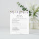 Tarjeta de juego con ducha de novia con vegetación acuática y flores violetas. Una forma divertida de interactuar con los duchas.
