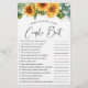 Ducha de novia "quién conoce mejor a la pareja", hoja de juego con una alegre acuarela de girasoles y verde eucalipto verde sabio y un guión elegante. Personalice las preguntas y añada el nombre de la futura novia y la fecha de ducha en la parte trasera.
