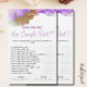 ¿Quién sabe mejor a la pareja? El juego Purple Bridal Shower Game es una manera divertida e interactiva de celebrar a la novia y al novio mientras atrapa a los invitados. Diseñada con un elegante tema morado, esta carta de juego incluye una serie de preguntas alegres sobre la pareja, risas motivadoras, recuerdos y competencia amistosa. Perfecto para duchas de novias, fiestas de compromiso o eventos de pareja, agrega un toque personal y ayuda a los huéspedes a sentirse más conectados con la historia de amor que se celebra. El diseño elegante y el formato lúdico hacen que sea a la vez un placer para la gente.
