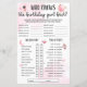 Lámina Quien Conoce Al Chica De Cumpleaños Mejor Juego -