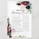 ¿Quién conoce mejor a mamá? Tarjetas de juego Baby Shower con tema floral boho burgundy