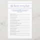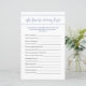 Este moderno juego de adivinanzas para baby shower es perfecto para tu tema de bebé cacahuete o elefante. Celebra a la futura mamá con un divertido juego de completar espacios en blanco donde los invitados ven quién conoce mejor a mamá. Productos coordinados para baby shower de elefante azul y cacahuete en nuestra tienda. ¡Personaliza el texto en esta plantilla!