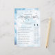 Añade algunas risas a tu ducha de bebé con esta tarjeta de juego '¿Quién lo dijo: Mamá o Papá?', parte de la colección Heaven Sent. Con un precioso cielo azul y un diseño de nubes, este juego invita a los invitados a adivinar si es más probable que cada declaración sobre el bebé sea hecha por mamá o papá. Perfecto para una ducha de temática celeste, esta tarjeta de juego es una manera divertida e interactiva de celebrar a los futuros padres. Mira como amigos y familiares hacen sus mejores conjeturas y disfrutan de los entretenidos resultados!