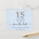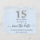 Una chica y de moda Salven la tarjeta de fecha para una fiesta de 15 años en Quinceañera. Fondo azul ababrupto decorado con polvo falso purpurina. Personalice y agregue una fecha y un nombre/edad. El texto: Save the Date se escribe con un gran guión de estilo escrito a mano. Número 15 con un tipo de letra de estilo globo.