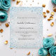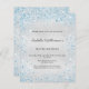 For an elegant Quinceañera, 15th birthday. A faux silver looking background. Decorated with blue faux glitter dust. Personalize and add a name, age and party details. The name is written with a hand lettered style script.